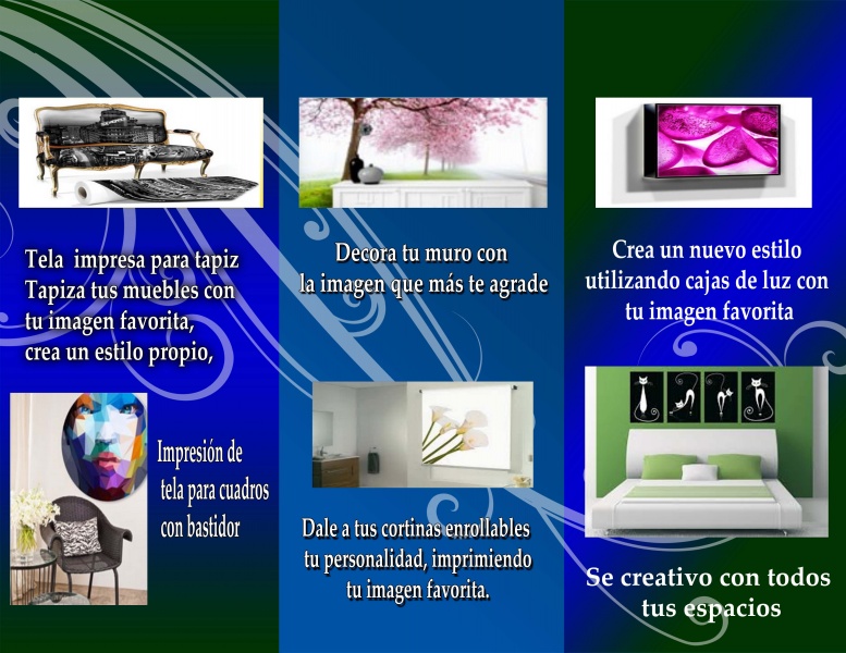 Este tipo de elementos sirven para dar a conocer una variedad más amplia de los servicios que proporciona tu negocio o empresa. Generalmente estan acompañados con imagen que hacen referencia al servicio que estan proporcionando, en algunas ocasiones presentan algún descuento que se otorga al presentar el volante o flayer, otra opción es presentar alguna promoción del mes. El formato que manejan puede ser desde 1/8 de carta hasta doble carta; aunque los tamaños mas populares son 1/2 Carta y 1/4 de Carta.